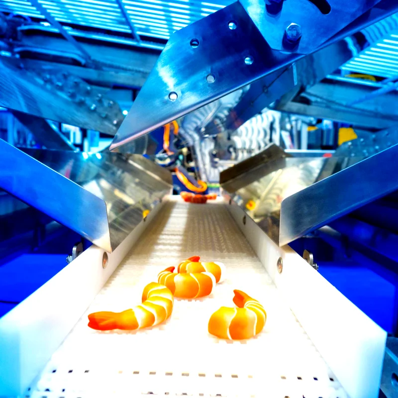 Shrimp, fish fillets, squid, and other seafood products are commonly processed using IQF.